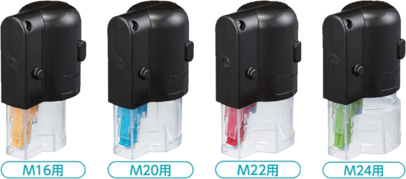 ボルトラインは、シャチハタ株式会社が開発したマーキング専用のインキ(油性顔料)と専用容器で構成される製品です。 高力ボルトの本締め完了後、ボルトとナット、座金に一直線にマーキングすることで「このボルトは適切に締結された」という証拠を視覚化できます。